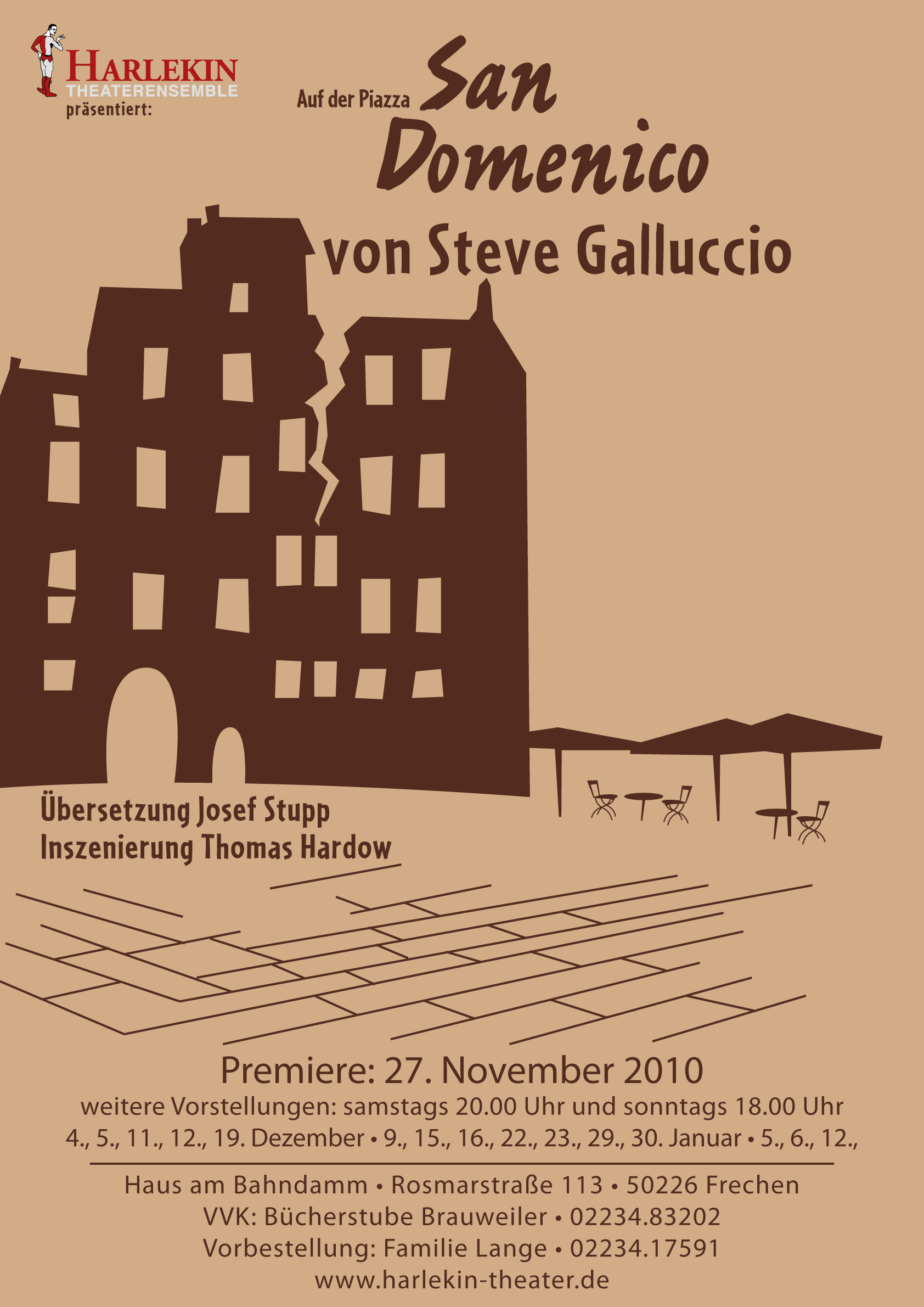 Nach dem riesigen Erfolg von „Mambo Italiano“ steht nun zum zweiten Mal als deutschsprachige Erstaufführung ein Stück des Italo-Kanadiers auf der Bühne Ihres Theater Harlekins. Und nicht nur das ... wir sind auch die zweite Bühne überhaupt, die nach der erfolgreichen Uraufführung in Montreal, Kanada, sich die Rechte sichern konnte. Verleben Sie also bei uns mitten im kalten Winter einen sommerlichen Abend, der Sie auf ihren nächsten Urlaub in „Bella Italia“ einstimmt, der Sie aber auch vor dem Umgang mit Neapolitanern warnen wird.
