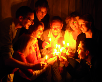 Der Autor Peter Shaffer bringt sein Stück durch eine geniale Idee zum Leuchten: Die Bühne ist hell, wenn sie für die Darsteller im Dunkeln liegt, und dunkel, wenn das Licht angeht. Während die Darsteller auf der Bühne ihr Orientierungsvermögen verlieren und Dinge tun, für die sie sich bei Licht schämen würden, hat der Zuschauer den Überblick und kann sich über die zahl- reichen Fettnäpfchen, die in der Dunkelheit lauern und von denen kaum eines ausgelassen wird, amüsieren.