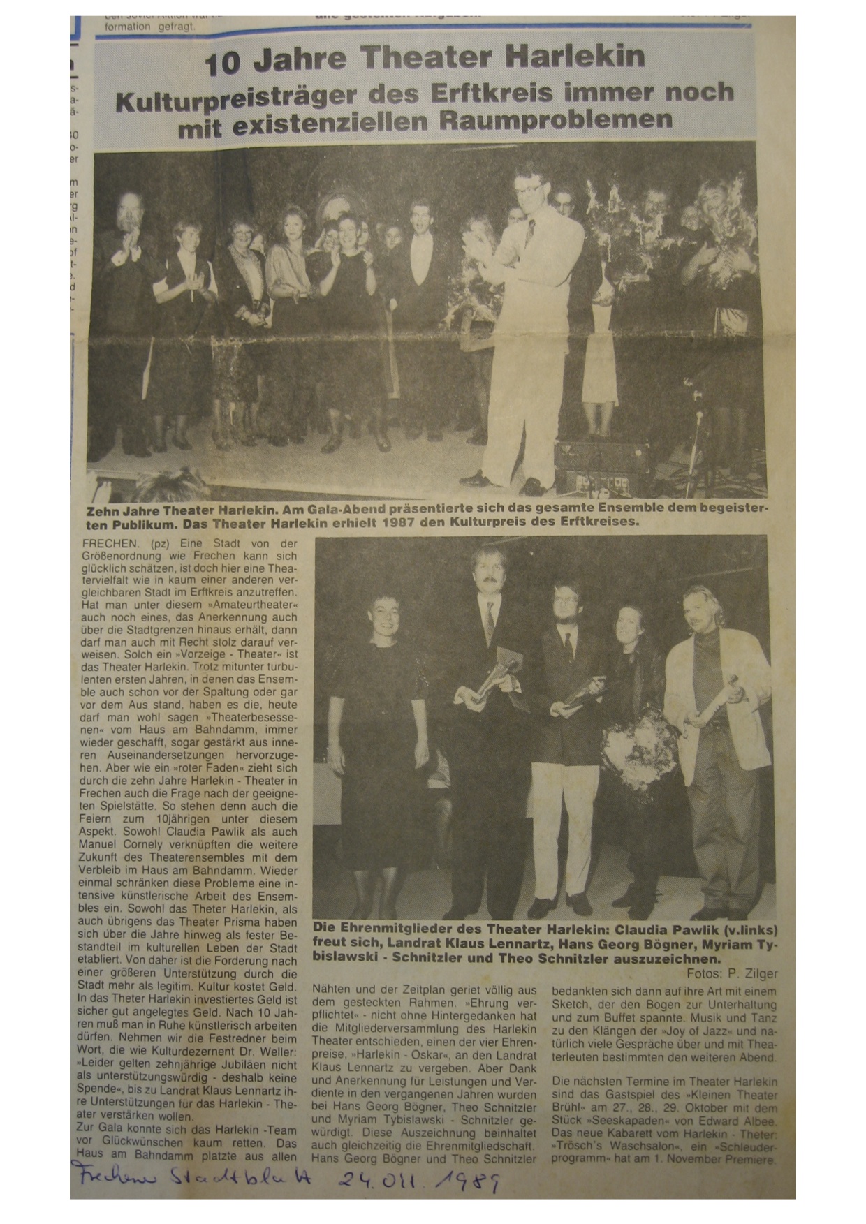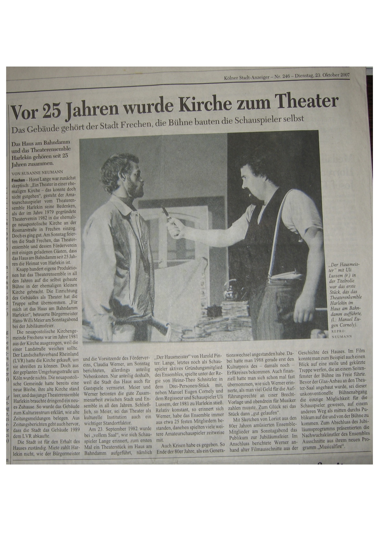 Indessen wird seit 1981 auch für das junge Theaterensemble Harlekin eine neue Bleibe gesucht. Die 1979 gegründete Gruppe hatte ihre ersten Inszenierungen und Gastprogramme im Medienraum der Bachemer Mauritiusschule gezeigt, der in einem eigenen Gebäude untergebracht war. Als dieser Raum in einen Kindergarten umgebaut wurde, ist für die Theaterleute dort kein Platz mehr. Seither fanden Proben gelegentlich im Haus Bitz statt, die Requisiten lagerten vorübergehend auf dem Dachboden der Mauritiusschule.